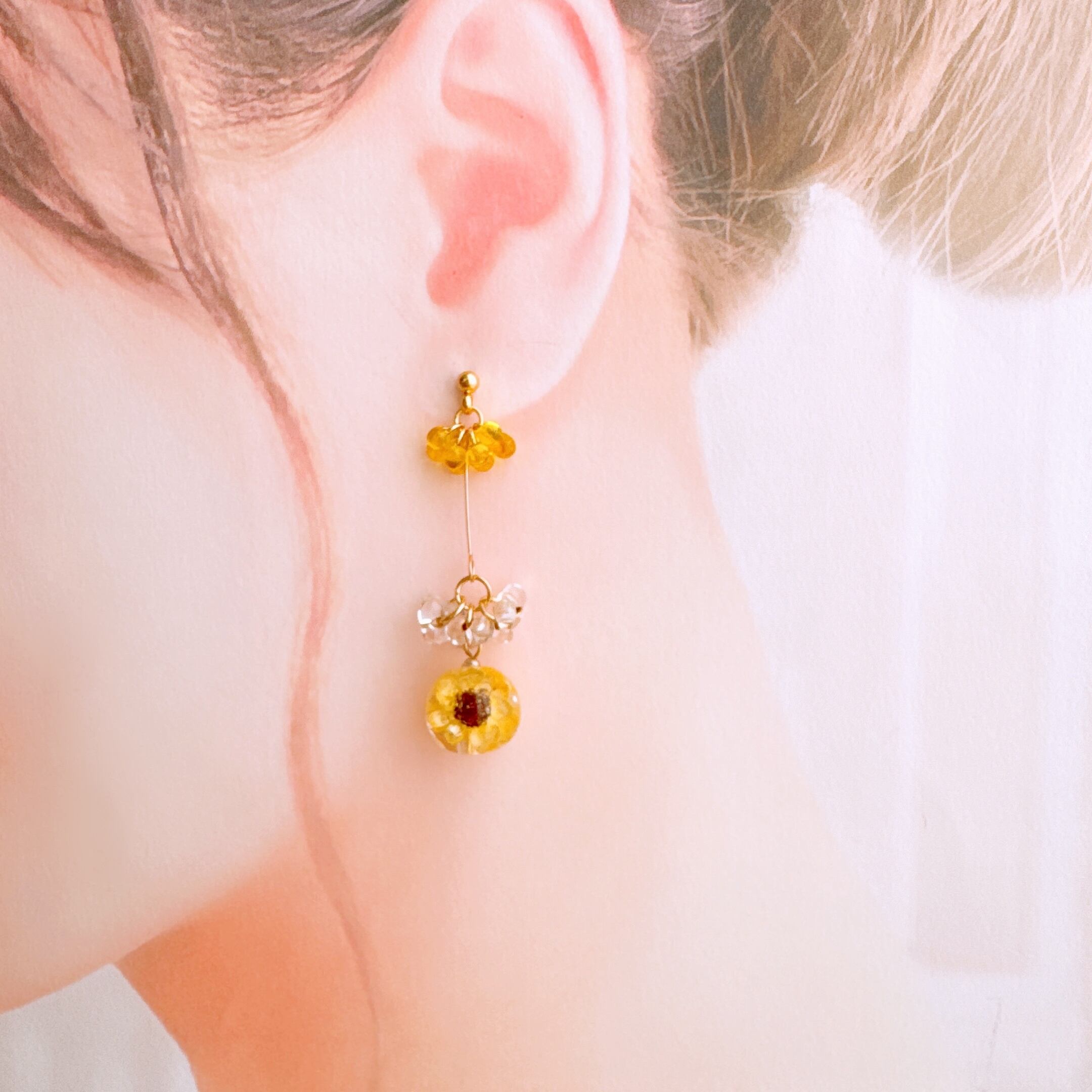 向日葵シリーズ【ピアスイヤリング・ブレスレット・ネックレス】などとセットコーデでもお楽しみください。